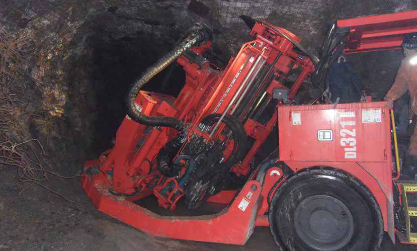 山特维克中深孔台车配备机械化换杆器能够钻凿精确平直深达54米的炮孔。